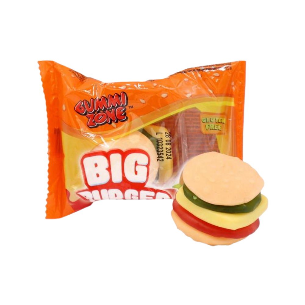 Le Gummi Zone Big Burger est un bonbon gélifié original qui reprend fidèlement l’apparence d’un hamburger, pour une expérience gourmande aussi amusante que savoureuse. Très populaire en France, ce bonbon XXL séduit immédiatement par son format généreux et son design réaliste, composé de plusieurs couches colorées rappelant le pain, le fromage et la garniture d’un burger.